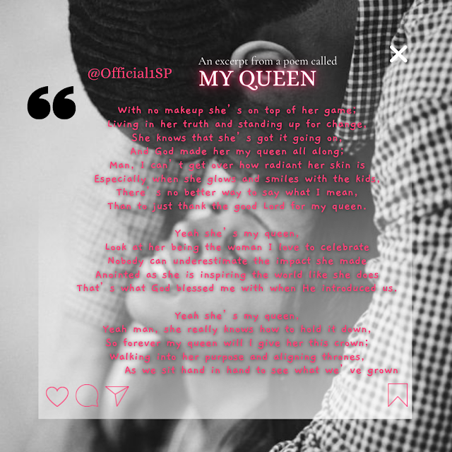 This is one of the poems called "My Queen" from the book 'Act Like You Know III: Verdict / Variorums' the release is in paperback & ebook.